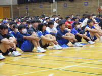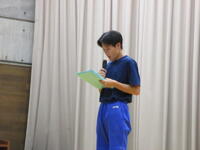 生徒会長激励の言葉、各部の決意発表、その後、応援団による力強いエールが体育館内に広がりました。出場する選手の皆さんは、大きく熱い声援を受け、大会へ向けた決意を新たにしました。最後に、代表として特設駅伝競走部の成田さんがあいさつを述べ、閉会しました。