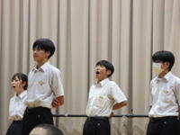夏休み中に英語科の先生、ALT先生とこつこつと練習し、発音や表現の練習に励みました。本日のステージでは、たくさんの観客の中で堂々と発表しました。