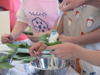 2024年9月4日 11時15分本日は、市食生活改善委員のみな様にお越しただき、「郷土料理」笹巻きづくりの実習を行っています。