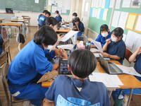 今年度も関東方面を計画しています。この時間は、タブレット等で情報検索、グループ内での話し合いを行っていました。