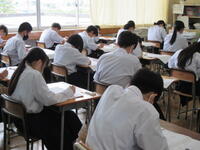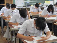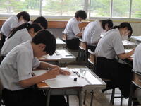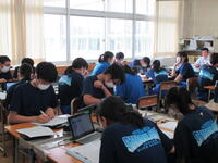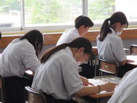 2024年6月24日 11時30分本日は、定期テスト二日目・3校時の様子です。今朝も、いつもより早く登校して復習する生徒が多く見られ、休み時間にノートを見直したり、友達と問題を出し合い答えを確かめたりするなど、さまざまな姿が見られました。