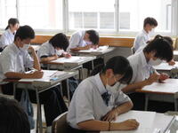 2024年6月21日 11時15分本日は、定期テスト一日目・2校時の様子です。1年生にとっては、中学校で初めての定期テストです。いつもより早く登校して復習する生徒、休み時間にノートを見直す生徒など、さまざまな姿が見られました。これまでの学習の成果を十分に発揮してほしいと思います。