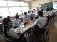 今日の1校時、1年3組で教育実習生の先生による「社会」の研究授業が行われました。