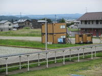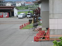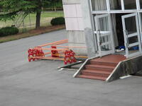 先週から、本校体育館の一部改修工事のための準備が始まりました。既に、体育館南入口付近に安全確保のためのバリケードを設置し、東側駐車スペースには工事事務所が建てられています。工期は、秋頃までの予定です。