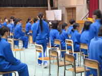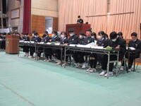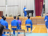3年生は、体育館で卒業式練習をしていました。証書授与の場面の練習です。少しずつ卒業の日に近づいている皆さんの表情は、とても引き締まっていました。