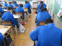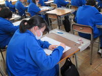 1年3組は、国語の授業でした。単元のまとめとして、テストを行っていました。聴き取りテストのあと、筆記の問題に黙々と挑戦していました。