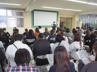 校長あいさつの後、会津サポートセンター岡田様から「ネットトラブルに巻き込まれないために」の講話をいただきました。教頭先生と生徒指導主事から学校生活に関わること、事務室の先生から会費納入に関することを説明し、PTA会長様からは本校PTA活動についてお話いただきました。
