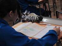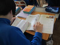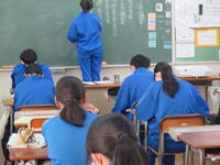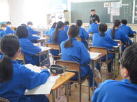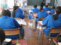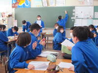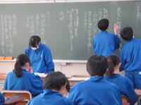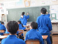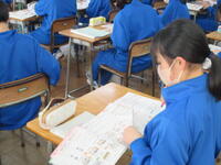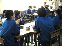 1年2組は、国語の授業でした。「少年の日の思い出」(長文)を読み、ブロックごとに内容を確認する学習でした。難しい言葉・語句を丁寧に確認していく学習活動でした。しんけんにとりく