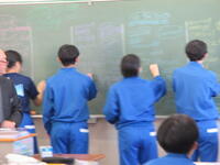 3年3組は、英語の授業でした。既習の題材「Power Your Futures」をもとに、教科書の単語の確認をしていました。リレー形式で単語を書き、正しいつづりを確認していました。