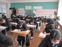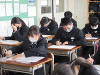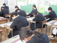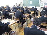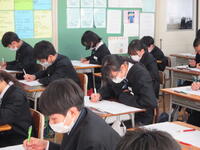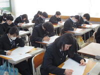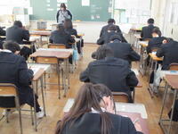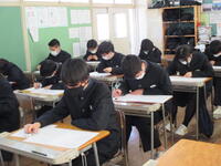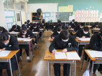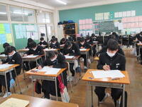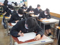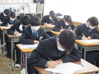 生徒の皆さんは、真剣な表情で問題を解いていました。ぜひ、これまでの学習の成果を発揮してほしい思います。