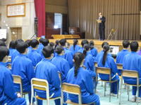 2024年2月16日 15時30分午後は、3年生が体育館で卒業式の練習を行いました。心構えについての説明後、基本的な動作について確認しながら、練習していました。式歌の練習もあり、ステージ上で立ち位置を確認しました。
