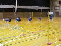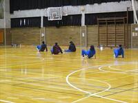 2024年1月15日 09時30分今朝も、県強化練習会に参加する特設陸上競技部の一部の皆さんが、練習を行っていました。降雪のため、体育館で身体づくりを行っていました。気温が低いため身体が温まらず大変ですが、動作の一つ一つを確認しながら、練習に取り組んでいました。