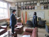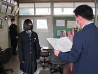2023年12月12日 14時45分本日午後、日本年金機構会津若松年金事務所白岩所長様、小椋副所長様が来校され、年金ポスターコンクール優秀賞2年猪俣さんに表彰状を授与していただきました。