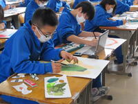 1年1組は、美術でした。下絵を完成させた後、着色をしていました。私語は全くなく、一人一人が集中して取り組んでいました。