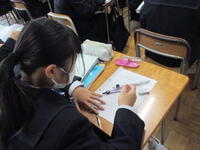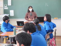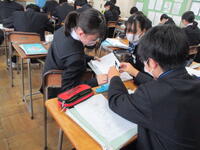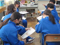 2年3組は、道徳でした。教科書の題材をもとにして、かけがえのない命について小グループで話し合い、自分や他者の生命の尊重を考えていました。