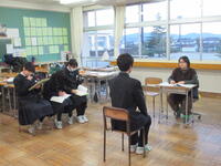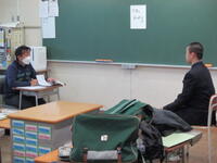 2023年12月14日 17時55分本日の放課後、私立高等学校を受験する生徒の皆さんが、面接練習を行っていました。既に、学年集会での面接指導、学級での面接練習を行っていましたが、いよいよ本番を想定した模擬面接を行っています。
