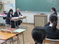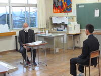 受験する生徒の皆さんは、試験官役の先生方から、志望動機、中学校で頑張ったこと、高校入学後に頑張りたいことなどの質問に、緊張しながら答えていました。