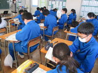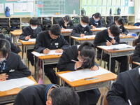 2023年11月24日 10時30分本日は、2学期・期末テストの1日目です。どの生徒も、問題に真剣に取り組んでいる姿が見られました。本日はこの後、先生方の採点業務のため給食後に下校となります。