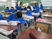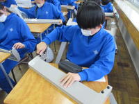 2023年11月17日 13時55分5校時、2年生は、机の天板拡張板を取り付けていました。これは、町内の皆様で構成している本校同窓会から寄贈していただいたものです。既に3年生は、昨年度から取り付け活用していました。2年生は、「机が広くなった」、「タブレットと教科書・ノートを開いて勉強ができる」「机から物が落ちない」などと感想を述べていました。来週から始まる定期テストの結果に期待がもてます。