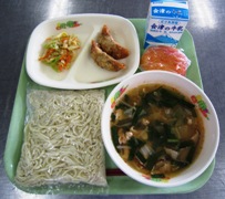 2015年3月6日 14時35分 3年生が給食を食べるのは、あと3回となりました。3年生リクエスト献立『もう一度食べたい思い出の給食』。3回目の今日は、人気NO.1めんです。毎年ダントツの人気を誇ってきたのはみそラーメンでしたが、今年の3年生は刺激を求めているのでしょうか?なんと、豚キムチラーメンが大人気でした。そして、ラーメンの相方はあげギョーザです!こちらも大人気メニューです。
