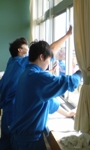 2015年3月10日 16時43分 お世話になった校舎、少しでもきれいにして後輩に引き継ぎたい・・・そんな思いでⅡ期を受けない3年生が美化作業に力と心を込めました。壁や廊下の汚れ落とし、掲示板の補修、窓ふき、トイレ掃除などの普段の清掃では手が回らないところを重点的に行いました。気温があまり上がらない中、ほぼ一日の作業でしたが、どの生徒も熱心に取り組みました。放課後は教室のワックスがけを行いました。