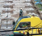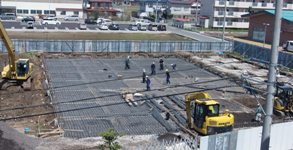 2015年4月21日 13時33分 現在基礎工事が進んでいます。昨日からプールを支える土間部分の配筋作業が行われています。