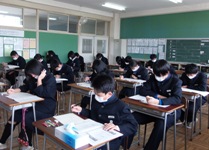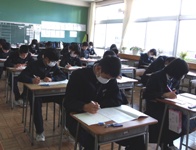 2015年4月21日 13時39分 全国学力・学習状況調査が行われました。国語A、国語B、数学A、数学B、理科の3教科5時間のテストに真剣な表情で臨みました。