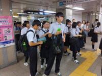 2024年9月12日 11時40分各班は、事前に吟味した行動計画により自主研修を行っています。出発前に、学年主任から熱中症対策について指導がありました。外の体感温度が高いように感じますので、生徒の皆さんも注意して行動しています。