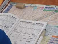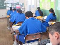 3組は、保健体育でした。体力テスト結果を自分手帳に転記しながら、自分の体力について自己分析し、体力向上策を考えていました。