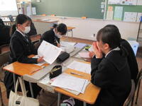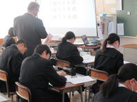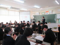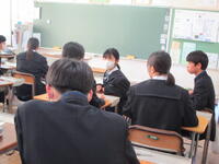初任者研修として、市教育委員会指導主事様をはじめ、授業をたくさんの先生方に参観いただきました。内容は、「自分の学習生活を振り返り、よりよい学習方法を考える」授業でした。生徒の皆さんは、小グループで、補助線を書いたりして真剣に考えていました。授業の後、来校いただいた市教育委員会指導主事様に、指導助言をいただきました。今後も生徒の学力向上のため、授業改善に努めまいります。