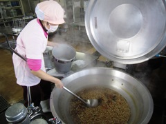今日の給食には赤飯とこづゆを取り入れました。たっぷりの干し貝柱を使ってだしを取ったこづゆを、よ~く味わって食べてくれました!こづゆ
