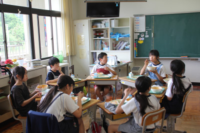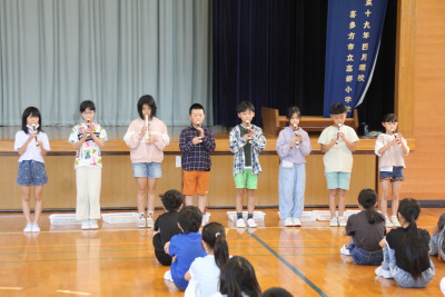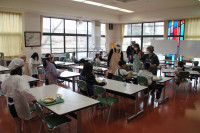 2025年11月6日 19時15分11月4日に3名の農業科支援員の方をお迎えして、収穫感謝祭を行いました。メニューは1・2年生が育てたサツマイモをゆでたもの、3・4年生が育てたニンジン、5年生が育てた白菜、6年生が育てたジャガイモやネギが入った豚汁、5・6年生が田植えと稲刈りをしたご飯でした。暑さなどの影響で少ししか取れなかったものもあり一部は購入しましたが、自分たちで育てた野菜の調理を頑張っていました。