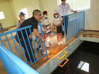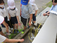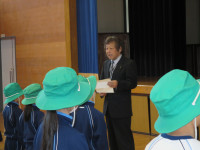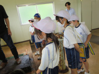 消防署の人から仕事の内容を聞くだけでなく、実際に救助や消火に使用する道具に触らせてもらったり、煙の部屋に入ったり、いろいろな体験をさせてもらったようです。自分たちの生活を守ってくれている人たちへの感謝の気持ちと火事のおそろしさを感じてくれたのではないかと思います。