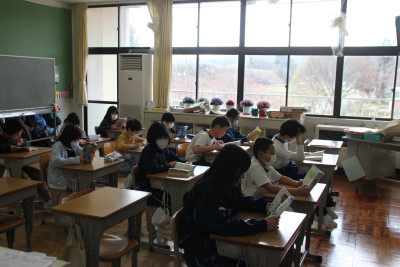 2025年11月6日 19時00分通常の読み聞かせは、地域の方にご協力をいただいて実施していますが、今日はいつもと違った読み聞かせをしていただきました。高郷中学校の生徒の皆さんによる読み聞かせです。