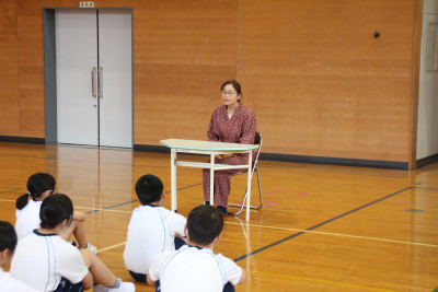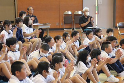 聞く子どもの様子を見ると、どんなお話か興味津々の子ども、知っている中学生が読むのを嬉しそう見る子どもなど、いつもと違った反応もありました。