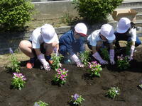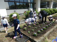 2024年5月22日 09時55分校庭の花壇がきれいな花でいっぱいになりました。