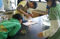 2016年4月22日 11時47分 写真は、6年生の理科実験の様子です。物を燃やすはたらきがある気体は何かを調べています。予想を立て、実際に試してみる(=実験)ことが大切です。これからも豊かな体験活動を取り入れていきます。