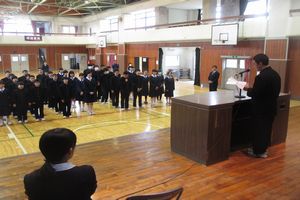 朝の集いでは、校長先生から高郷中学校の伝統、