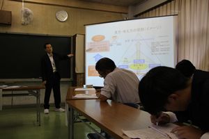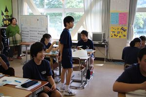 発表している生徒も聞いている生徒もペンを持ちメモ