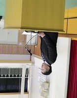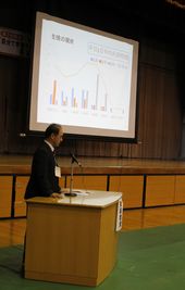 【県PTA総務委員長 近内様のご挨拶と会場の様子】