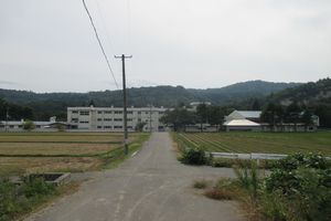 【校内駅伝大会のコースより白亜の学び舎を臨む】