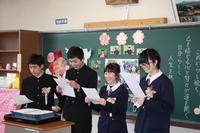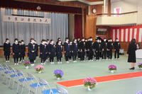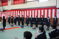 2020年3月13日 15時47分本日3月13日(金)、卒業証書授与式を挙行いたしました。新型コロナウィルスによる臨時休校措置のさなかであり、参加者を卒業生、在校生、3学年保護者、職員に絞り、時間も短縮する形での実施でしたが、参加者全員が心をこめて、卒業生の旅立ちを見届け、祝福することができ、大変うれしく思いました。卒業生にとっては、突然の休校措置と直後の県立高校入試、その後も卒業式当日までは登校できない、友達と会うこともできない生活の中で、不安や焦りもあったことと思いますが、今日の態度は休校以前と全く変わりなく、堂々として立派な態度でした。いつもの3年生らしい、明るく、涙と笑顔にあふれ、最後まで誠実に式に臨む姿には、特別な状況での実施の分、余計に心熱くなる思いがしました。また、3年生で歌った「遙か」、これまで生活をともにしてきた在校生と歌った「旅立つ君へ」の歌声も、参加者全員の胸を打つものでした。改めて、卒業生の洋々たる前途を祝し、新しいステージでの活躍を期待いたします。卒業生の皆さん、保護者の皆様、ご卒業本当におめでとうございました。