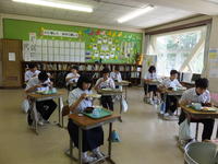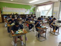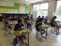 2020年9月8日 13時17分今日は9月8日、月に1度の「良い歯の日」(毎月8日)です。そして、それに合わせて、今日の給食は「サンマルちゃん」献立でした。メニューは「ごはん、イカのチーズ焼き、かみかみごぼうサラダ、なすのみそ汁、牛乳」の5品。「イカのチーズ焼き」はイカそのものに弾力があり、かみ応え十分です。また、「かみかみごぼうサラダ」はいつもより厚めに切ったごぼう、キャベツ、ニンジンが入っています。噛めば噛むほど野菜のうま味がくちいっぱいに広がります。ねらい通り、よく噛んで、口いっぱいに広がるおいしさを味わうことができました。ごちそうさまでした。