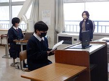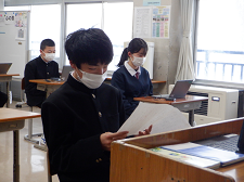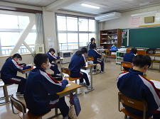さて、今日から3学期がスタートしました。あいにくの猛吹雪という悪天候ではありましたが、生徒たちが笑顔で元気に登校できたこと、とても嬉しく思います。始業式は、職員室と各学級をつないだオンラインで行われました。校長式辞の後、各学年代表生徒が、3学期の抱負を発表しました。3学期は、1・2年生にとっては次の学年への準備の期間、3年生にとっては、中学校生活のまとめの期間になります。高い目標をもって、学校生活を送ってほしいと思います。