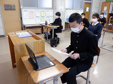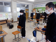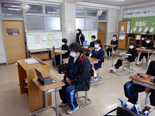 本日の朝の集いは、3年生の高校受験シーズンが本格的に始まったため、コロナ対策でオンラインで行いました。今日の内容は、「校歌を歌うこと」についての教頭講話でした。浜通りの楢葉中学校出身で、サッカーなでしこジャパンに選出されているの教え子の選手の例を出し、「自分の学校の校歌を誇りをもって歌うこと」について話をしました。