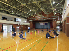 今日から、特設陸上部の朝練が始まりました。今朝は雨が降っていたため、体育館でのサーキットトレーニングでした。生徒たちはさわやかな汗を流しながら、トレーニングに励んでいました。