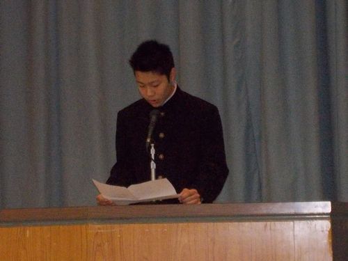 2015年11月17日 18時05分 今日の朝のつどいで、「県新人剣道大会を終えて」と題して剣道部主将の貝沼くんが発表しました。