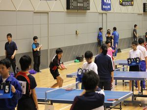 2016年6月8日 16時58分押切川総合体育館で行われた卓球男子シングルスの様子