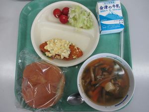 2016年6月10日 13時03分 今日の献立は、 フィッシュバーガー ミニトマト チンゲン菜スープ 牛乳 でした。