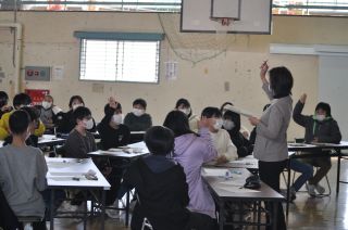 6年生の最後の授業参観は、体育館で道徳科の授業を行いました。